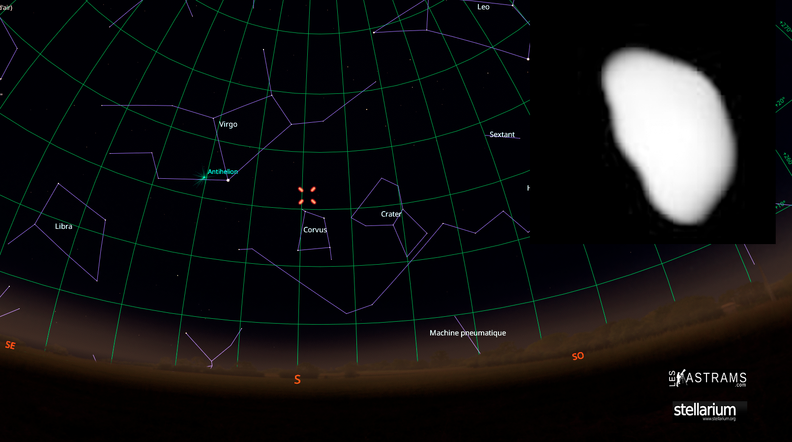 LUNDI 22 20:07 Opposition de l'astéroïde 6 Hebe avec le Soleil (dist. au Soleil = 2,892 UA; magn. = 9,8)