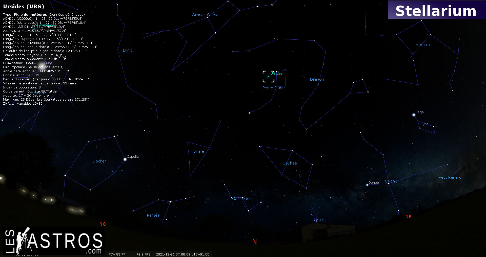 Cette pluie de météores est à surveiller, notamment le 22 décembre. Cette année la Lune gibbeuse décroissante ne devrait pas trop gêner l’observation.