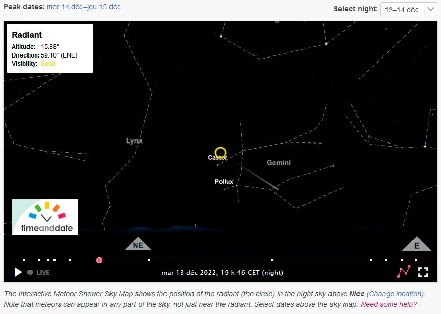 Le radiant des Géminides le 13 décembre 2022